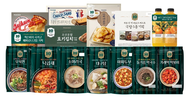 ‘조선호텔 포기김치 7kg(4만9800원)’, ‘피코크 꿔바로우 대용량 1kg(1만1980원)’, ‘피코크 베스트 국탕 5종 기획(1만9800원)’, ‘피코크 잭슨피자/시카고페퍼로니 2입 기획(1만2980원)’, ‘피코크 오렌지&한라봉 2병 기획(1만3800원)’, ‘피코크 초콜릿샌드위치 135g*10입(2만1980원)’ 등을 준비했다.