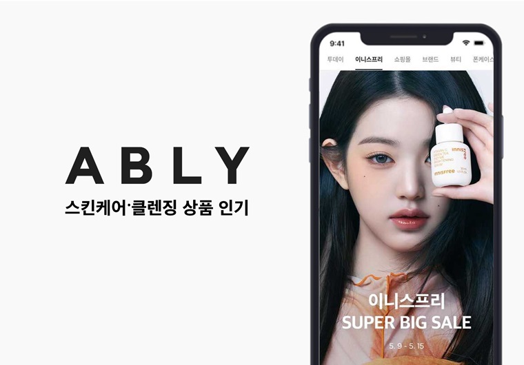 4월 스킨케어 품목에서는 ‘세럼, 앰플’ 상품 거래액이 전년 동기 대비 2배가량 증가했으며, 초여름 더위가 시작된 5월에도 인기가 지속됐다. 5월 3일~15일 진행한 이니스프리 프로모션 기간 에이블리 내 이니스프리 거래액은 직전 동기간(4월 20일~5월 2일) 대비 360% 대폭 성장했다. ‘비타C 그린티 엔자임 잡티 토닝 세럼’, ‘레티놀 시카 흔적 앰플’ 등 1020 잘파세대를 중심으로 트러블 흔적, 잡티 케어 상품이 높은 인기를 끌었다.
