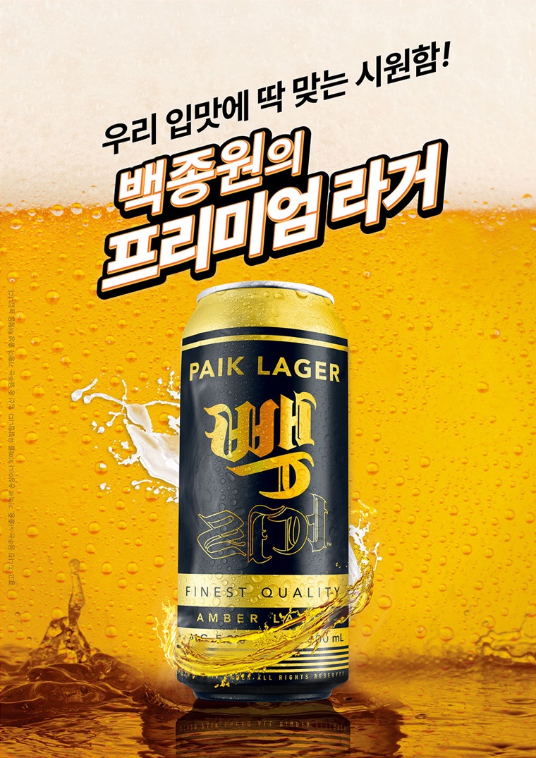 외식 프랜차이즈 전문 기업 더본코리아(대표 백종원)가 달큰하면서 고소한 몰트의 풍미와 탄산감이 매력적인 백종원 대표의 시그니처 라거 맥주 ‘빽라거(PAIK LAGER)’를 캔맥주로 선보인다고 밝혔다.