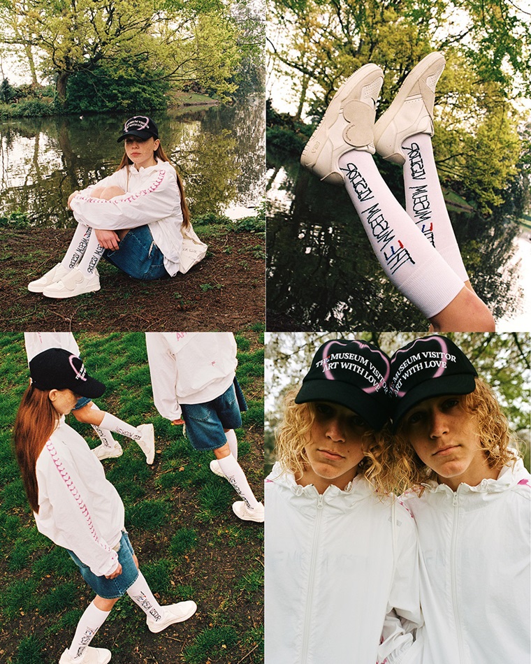 더뮤지엄비지터의 브랜드 주 요소인 ‘하트(HEART)’를 컬렉션의 모티브로 활용, 어린 시절 동산을 뛰어놀며 느꼈던 행복한 시간을 회상하며 당시의 감정을 티셔츠와 바람막이, 데님 쇼츠, 신발, 모자, 가방 등에 경쾌하게 그려낸 것이 특징이다. 더뮤지엄비지터의 영문 필기체 로고 중 스펠링 E를 휠라의 F로 조합한 점 역시 이번 컬렉션 디자인의 포인트다.
