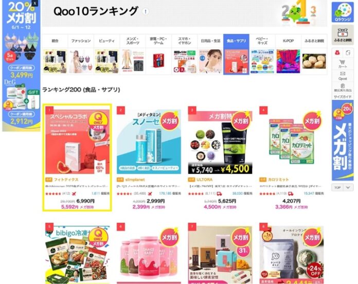 큐텐은 이베이가 운영하는 글로벌 온라인 쇼핑몰로 일본에서는 온라인 해외 직구 사이트로 인기가 높다. 큐텐 메가할인은 큐텐이 계절별로 하는 정기 할인행사로 20% 이상의 할인에 다수의 한국 제품도 일본 시장을 공략할 때 큐텐을 이용한다.