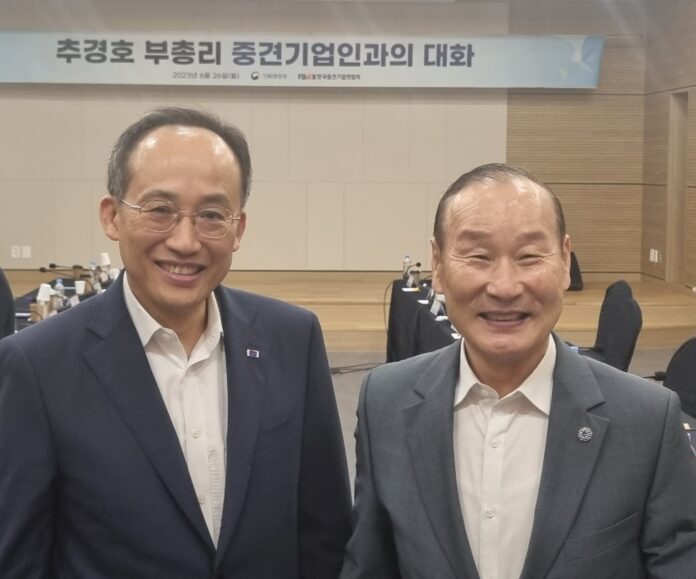 이날 간담회에서 추경호 경제부총리는 “기업 활동의 걸림돌 제거 등 경제 규제 혁신에 더욱 매진하겠다”라면서 “중견기업들이 글로벌 공급망 재편, 디지털·그린 전환, ESG 확산 등 외부 환경 변화에 빠르게 적응할 수 있도록 경영 혁신과 기술·공정 고도화 지원을 더욱 강화하겠다”고 밝혔다.
