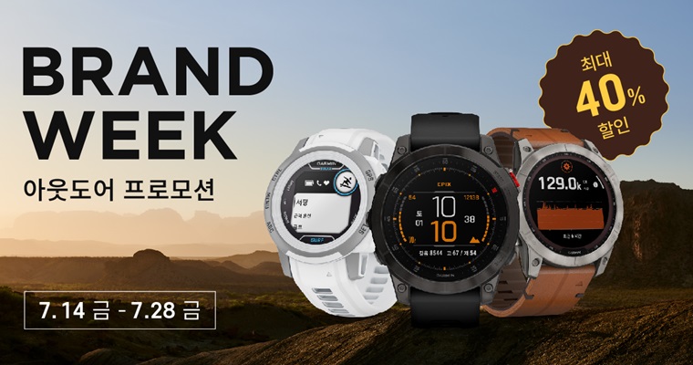 프로모션은 7월 14일부터 7월 28일까지 가민 공식 홈페이지와 가민 공식 브랜드샵에서 진행되며, 다양한 아웃도어 제품들을 최대 40% 할인 혜택으로 만나볼 수 있다.