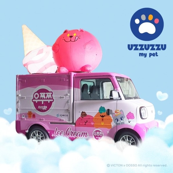 공개된 차량은 우쭈쭈마이펫 애니메이션 속에 나오는 아이스크림 매대를 형상화한 자동차와 캐릭터 조형물의 형태로  오는 9월 런칭 예정인  포트로 P350 모델에  아이스크림 자동판매기를 탑재하였다.  이번 콜라보 과정에서 ‘포트로 P350’은 차량 모양과 높이, 적재중량 등이 우쭈쭈마이펫 아이스크림 자동판매기로 변경에 적합해  호평받았다.