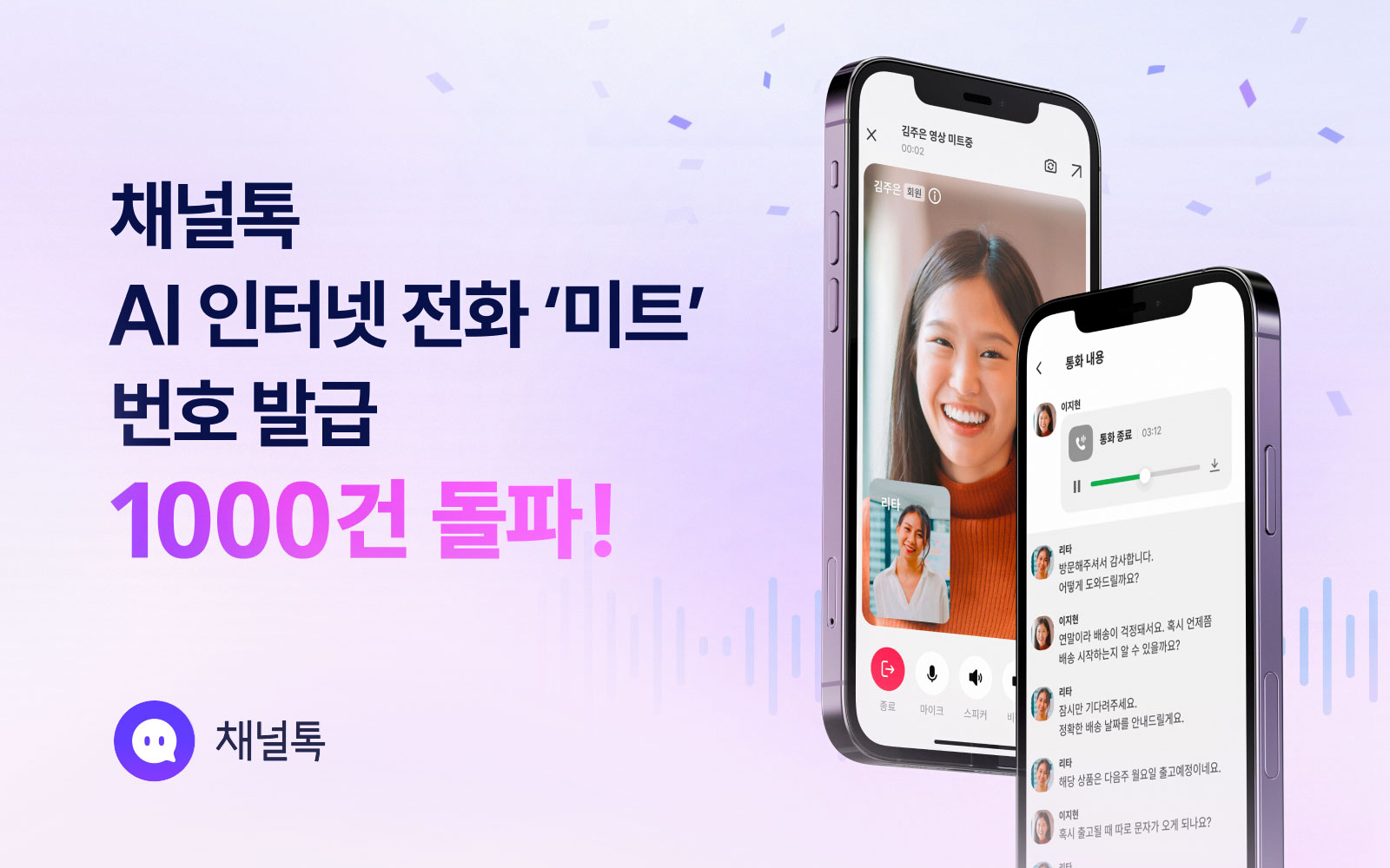 올인원 비즈니스 메신저 ‘채널톡’을 운영하고 있는 (주)채널코퍼레이션(공동대표 최시원·김재홍)이 새롭게 선보인 AI 인터넷 전화 서비스 ‘미트’의 사업자 전화번호 발급수가 1000건을 돌파했다고 3일 밝혔다.