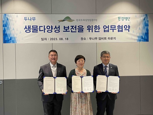 환경재단(대표 이미경)이 두나무, 한국수목원정원관리원과 함께 국내 자생식물 복원을 통한 생물다양성 보전을 위해 업무협약(MOU)을 체결했다고 21일 밝혔다.