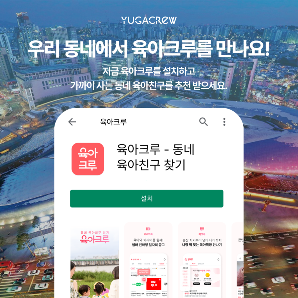 ‘엄마들의 동네 육아친구 찾기 – 육아크루’ 앱은 구글 플레이스토어와 애플 앱스토어에서 무료로 다운로드할 수 있다.