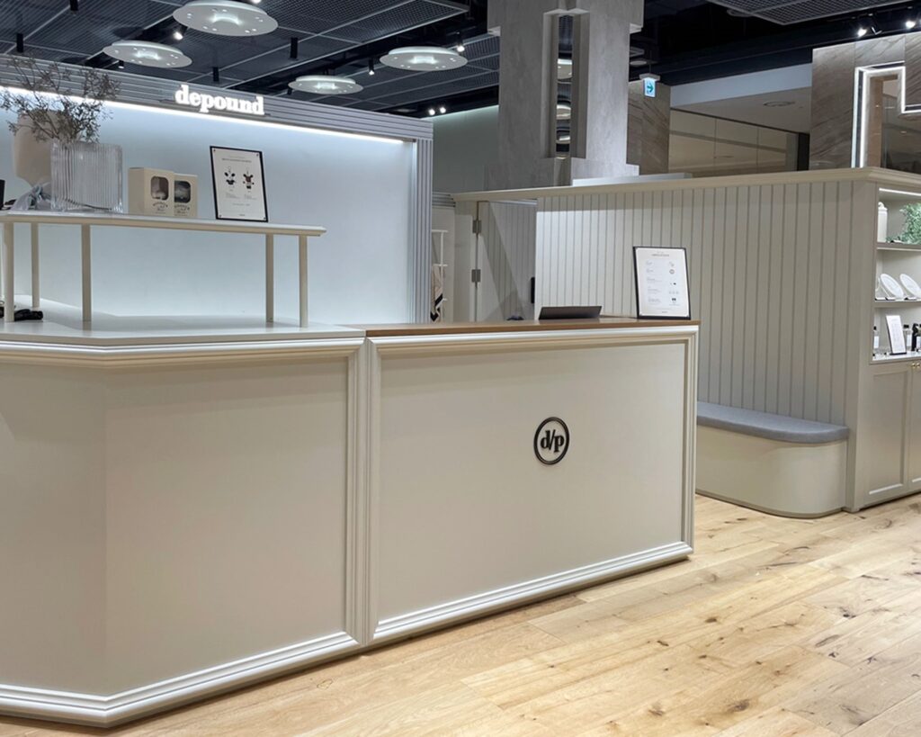 특유의 편안하면서도 감성적인 프렌치 무드의 의류, 가방, 액세서리 등을 전개하고 있다. 드파운드 현대백화점 판교점은 베이지, 화이트, 우드 계열의 부드러운 색감과 꽃을 활용한 인테리어로 브랜드 특유의 분위기를 자아내 눈길을 끈다.