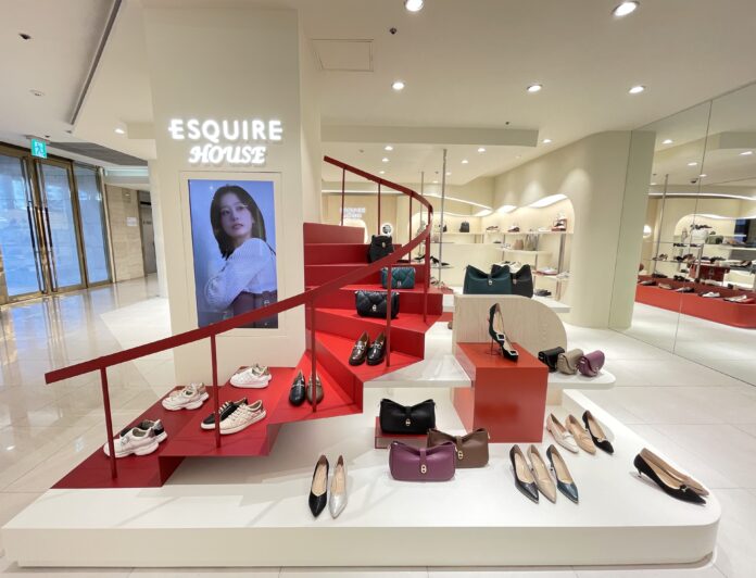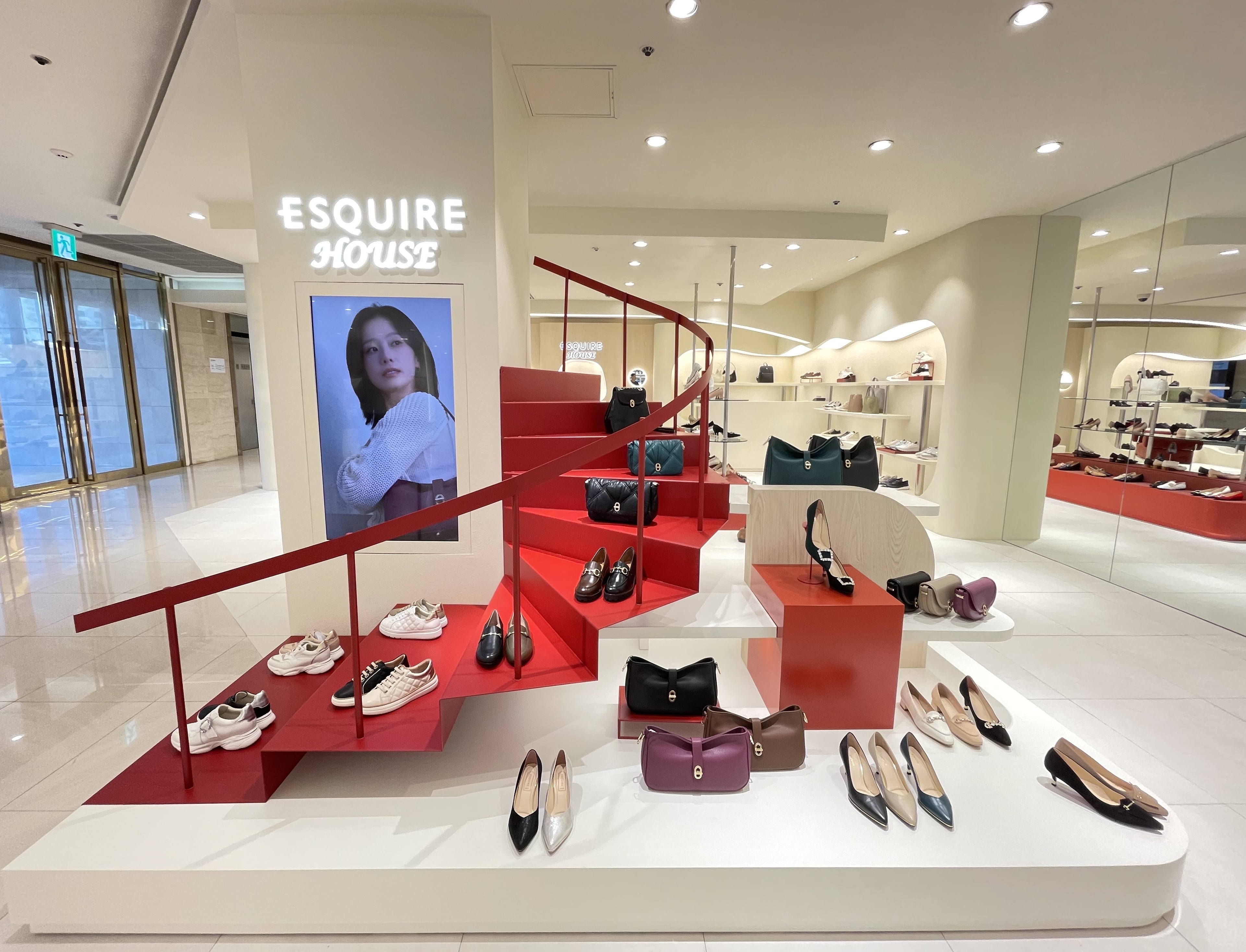매장에 방문하는 고객에게 에스콰이아의 향상된 고객서비스와 제품, 공간의 경험을 느낄 수 있도록 설계되었다. 슈즈와 백의 피팅이 수월할 수 있도록 여유 공간을 확보하여 고객 편의성을 높혔으며 최적화된 동선으로 편안하게 쇼핑할 수 있도록 공간을 구성했다. 제품은 모던 클래식과 컨템포러리가 공존하면서 라이프 스타일까지 아우르는 다채로운 2023년 FW 신상품으로 제안한다.