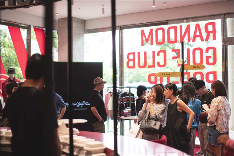 팝업 첫날에는 에릭의 마니아 팬층을 포함해 패션, 골프 업계 내 셀럽과 인플루언서 등 500여명 이상의 인파가 방문해 인산인해를 이뤘다. 그간 베일에 쌓여 있던 랜덤골프클럽의 첫 제품을 한 눈에 둘러볼 수 있는 자리로, 방문객들은 브랜드의 독창적인 23 FW 의류와 잡화들을 둘러보며 인증샷을 찍는 모습이 이어졌다.