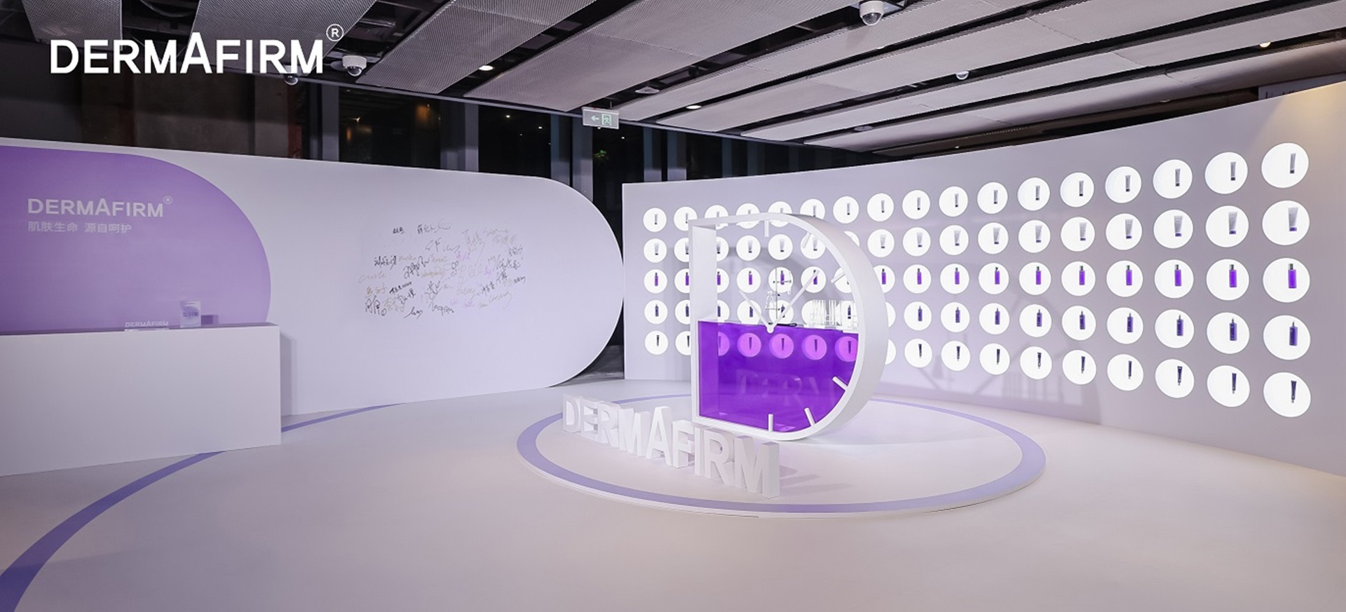먼저 더마펌 존은 더마펌의 ‘D’ 로고와 더 펩타이드 라인의 콘셉트 ‘타임 리턴(Time-Return)’을 시계 모티브로 형상화한 조형물과 벽면 가득 자사 베스트셀러들을 비치해 주목도를 높였다. 지난 21년간의 주요 연혁을 담은 히스토리 존과 브랜드 대표 인기 제품을 전시해 놓은 스테디셀러 존에서는 촘촘한 더마 솔루션을 제공하는 더마펌의 브랜드 철학과 R&D 기반의 우수한 제품 경쟁력을 느끼게 했다.