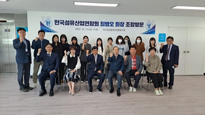 한국섬유산업연합회 최병오 회장은 10월 13일(금) 개최한 ‘2023 패패부산’(부산국제섬유패션전시회) 개막식 참석에 이어 ‘섬유패션 카라반’(이하 카라반) 팀을 이끌고 부산 봉제기업 현장을 방문했다.