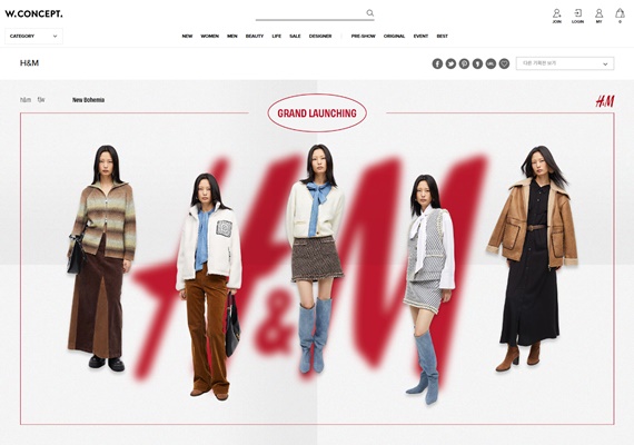 H&M은 2010년에 국내 첫 진출하였으며, 전국적으로 39개 스토어를 현재 운영 중이다. 2016년에 오픈한 H&M 공식 온라인 스토어와 2020년 런칭한 신세계 그룹 대표 이커머스 플랫폼 SSG닷컴에 이어 W컨셉에 10월 19일 런칭했다.
