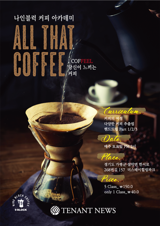 가을의 정취와 함께 진정한 커피가 주는 감동을 느끼고 배울 수 있는 코스로 10월 20일 토요일부터 진행하는 커피 아카데미는 나인블럭 전 매장과 온라인을 통해 사진 신청이 가능하며 자세한 내용은 공식 홈페이지를 통해 확인할 수 있다.