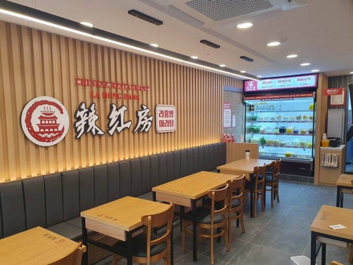 매장 내부는 라홍방마라탕만의 아이덴티티를 담은 디자인으로 편안한 느낌의 우드와 라홍방의 브랜드 컬러인 빨간색을 포인트로 사용해 개성 있으면서도 편안하게 식사를 즐길 수 있도록 연출하고 있다. 코지한 느낌의 공간이 모든 연령대가 편하게 이용할 수 있게 문턱을 낮추고 있다.