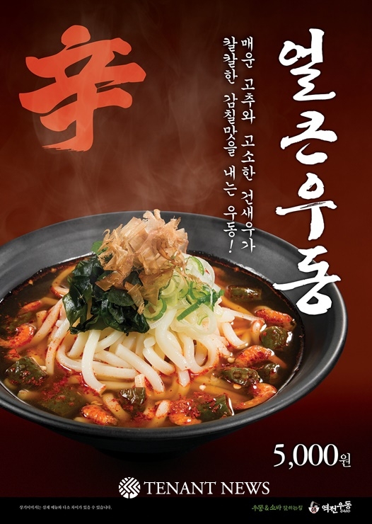 ‘얼큰우동’은 기존 우동 국물에 매운 고추와 고춧가루, 고소한 건새우를 더해 칼칼한 맛을 낸 우동 메뉴로 개운하면서도 얼큰한 국물 맛이 특징이다. 대파, 미역, 가쓰오부시 토핑이 올라가 한층 더 풍부한 맛을 느낄 수 있다.