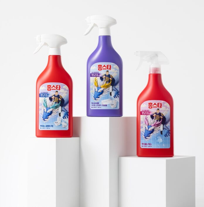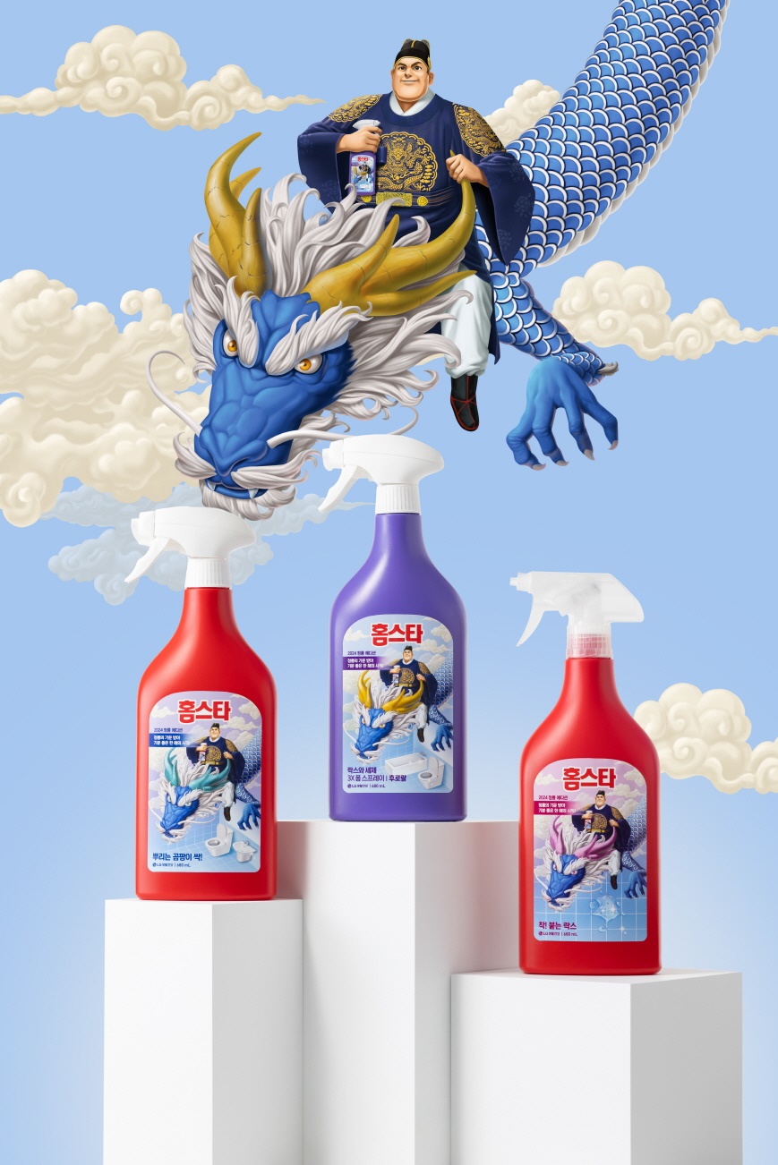 청룡에디션은 홈스타 캐릭터 ‘힘쓴’이 청룡포를 입고 청룡을 타고 하늘에서 내려와 청룡을 닮은 폭풍 같은 세정력으로 만백성의 청소 고충을 덜어준다는 흥미로운 이야기를 담았다. 이 이야기를 제품 전면에 그대로 구현한 청룡과 힘쓴의 일러스트가 갑진년 신년을 맞은 고객들에게 새로운 고객경험을 전달한다.세 제품 모두 홈스타만의 강력한 오염 침투, 분해, 세정이라는 3중 트리플액션™ 세정 시스템으로 힘들게 문지르지 않아도 뿌리고 헹구기만 하면 욕실 청소를 마칠 수 있다. 세정 성분을 3배(자사 기존 제품 대비) 강화한 락스와 세제를 최적의 비율로 배합한 ‘홈스타 락스와세제 스프레이(락스와세제 3X 폼스프레이) 후로랄’은 솔질 없이도 곰팡이와 찌든 때, 각종 악취 원인을 해결할 수 있는 제품이다.