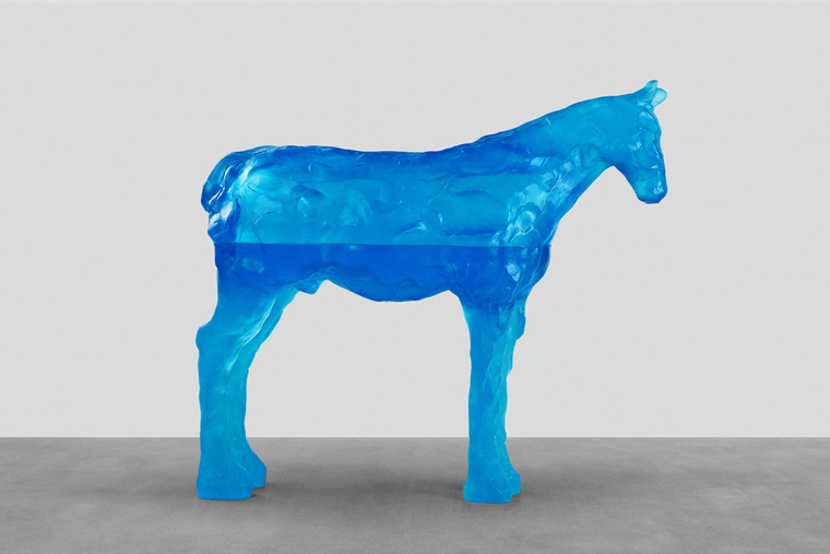 각 작품은 물, 공기, (말의 형태로 표현된) 흙, 그리고 불이라는 4원소의 결합체로서, 이는 유리라는 물질로 응축된다. 반면 작품들은 완벽하게 마감된 유리 표면을 넘어 무한한 공간을 향해 나아가는데, 전시장 곳곳에 시시각각 변화하는 무한한 푸른빛을 비추며 ‘빛의 풍경’을 창조하는 프리즘이 된다. 이 안에서 수직적이고 불투명한 관객의 존재는 마치 환영과 같은 말 사이를 이동하며 극적인 대비를 이룬다.