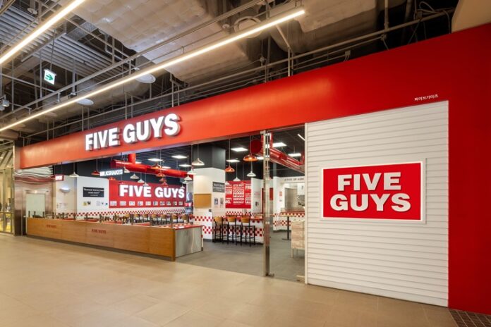 지난해 6월에 서울 강남대로 변에 문을 연 1호점은 오픈 이후 4개월 넘게 하루 평균 1800~2000명의 고객이 방문하고 있다. 지난해 10월에는 서울 여의도 더현대서울에 파이브가이즈 2호점을 오픈했다. 더현대 서울 지하 1층에 위치한 파이브가이즈 2호점은 전용 면적 297㎡(90평), 100석 규모다.