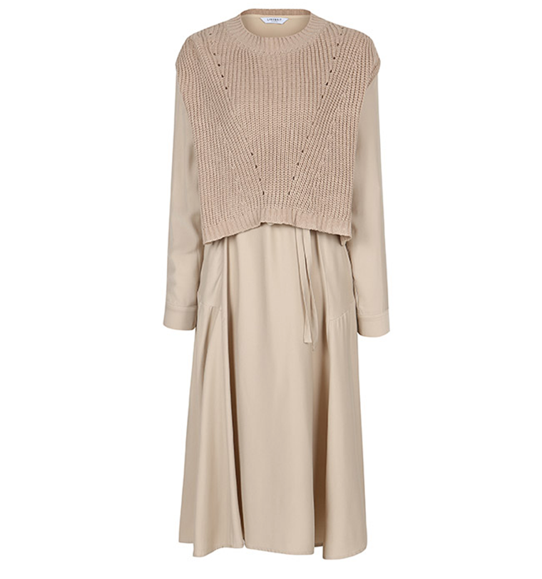 니트 베스트와 스커트가 매치된 데일리 니트 원피스. 부드러운 니트 감촉과 트렌디한 A라인 스커트 매치로 캐주얼하고 실용적인 아이템