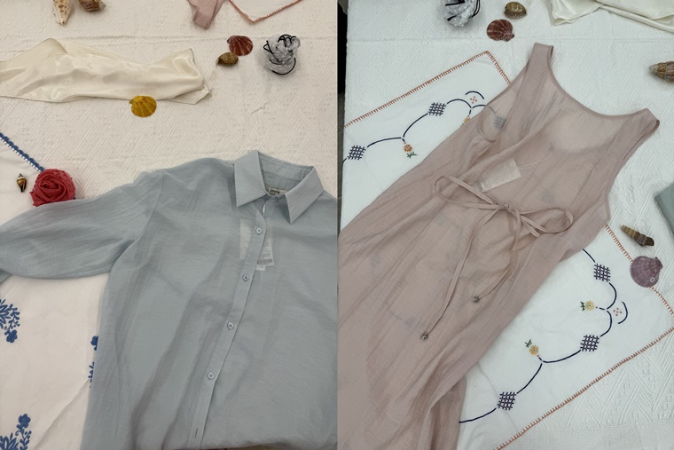 어몽의 BM팀 김현아 팀장은 이번 컬렉션의 핵심 아이템으로 블라우스를 꼽았다. 이와 더불어 시스루 오버핏 브라운 셔츠와 플라워 자카드 셔링 화이트 블라우스를 레이어드한 스타일링도 이번 컬렉션에서 힘을 준 스타일이라 어필했다.