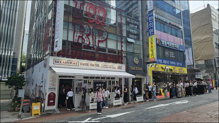 대표적으로 국내외 고객이 빠르게 증가하고 있는 곳은 명동점과 성수점이다. 먼저 명동점은 해외 고객이 급증하면서 최근 들어 매일 오픈런 현상까지 나타나고 있다. 명동 지역 일대의 호텔에 묵고 있는 해외 관광객들이 아침 식사 대용이나, 브런치 메뉴로 브레디포스트의 프레즐과 커피, 음료를 즐기기 위해 찾으면서 영업 시작 이전부터 50m 이상 길이의 긴 줄이 만들어지고 있는 것이다.