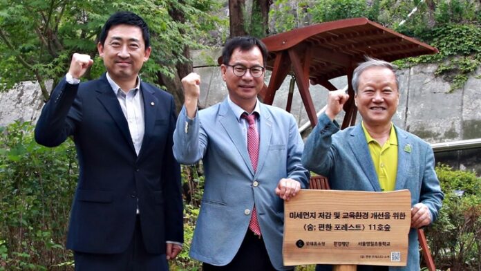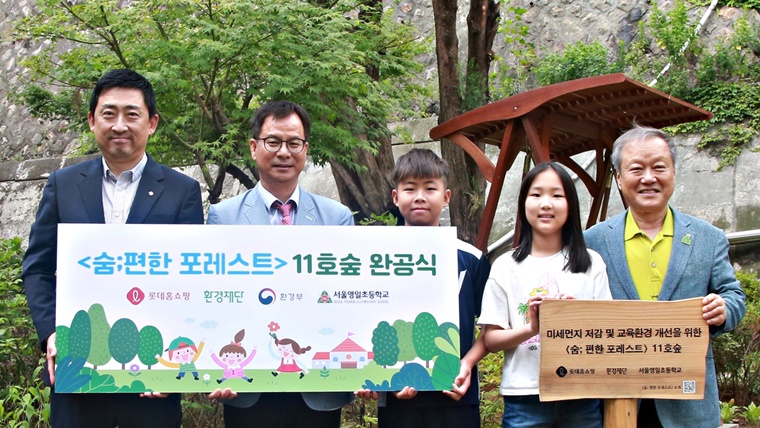 롯데홈쇼핑(대표 김재겸)이 지난 7월 3일(수) 서울 구로구에 위치한 영일초등학교에 미세먼지 저감을 위한 친환경 녹지공간 ‘숨;편한 포레스트’ 11호를 조성하고 완공식을 진행했다.