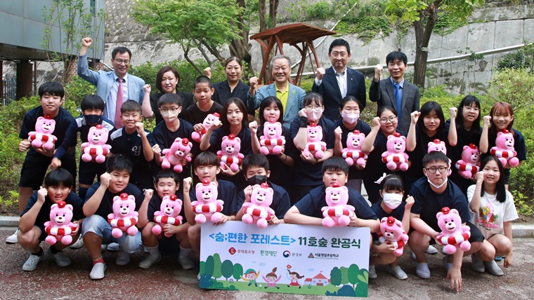 서울영일초등학교 재학생 중 다문화 가정 학생의 비중은 70%로 매우 높다. 롯데홈쇼핑은 학교 시설 개선 및 녹지 공간 조성에 어려움을 겪고 있는데다 유휴공간이 많은 영일초등학교를 11호 숲 조성지로 선정하고, 약 한 달 간의 공사 기간을 거쳐 학교 숲을 완공했다.약 400㎡ 면적에 초화, 교목, 관목 등 총 3,140그루를 식재하고 인조 잔디, 야외 테이블, 그네 의자를 설치해 휴식공간을 조성했다. 향후 학생들의 생태햑습, 친환경 쉼터로 활용될 예정이다. 롯데홈쇼핑은 2025년까지 미세먼지 집중관리구역 등에 나무를 식재하고, 시민 편의시설을 제공하는 ‘숨;편한 포레스트’ 조성 작업을 진행 중이며 내달 서울 노원구 월계중학교에 도심 숲 12호 착공을 계획중이다.