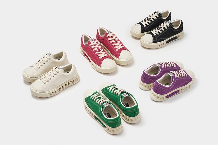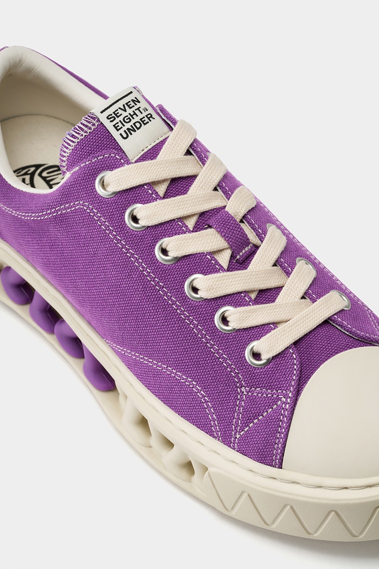 이번 빈티지 컬렉션에서는 세븐에잇언더의 시그니처 미드솔과 바이오 워싱 기법으로 제작된 일본산 캔버스 소재가 결합됐다. 바이오 워싱은 미생물을 이용하여 고온에서 원단을 삶는 기법으로 부드러운 빈티지 색감을 구현해낸다. ‘딥 퍼플’ ‘더스티 레드’ ‘모스 그린’ ‘오프 화이트’ ‘애쉬 블랙’ 총 다섯 가지 컬러웨이로 발매되며 신을수록 자연스럽게 에이징된다.또한 안감은 가죽으로 제작되어 부드러운 느낌의 착화감이 구현되었으며, 비대칭 토캡은 독특한 실루엣을 보여준다.
