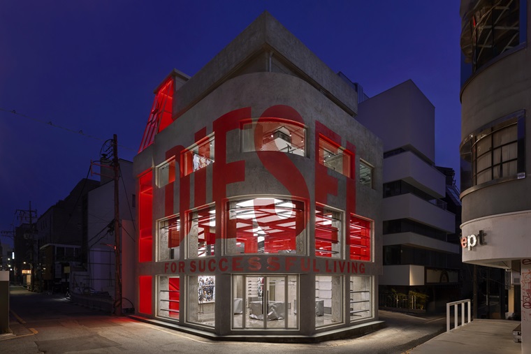 새롭게 선보이는 VIP 라운지 공간과 최신 디젤 컬렉션의 광범위한 제품군과 익스클루시브 제품을 볼 수 있으며, 디젤의 정체성, 개성주의, 자유와 대담함의 정신을 보여준다. 4개의 층과 루프탑으로 구성된 5층 규모의 매장은 디젤만의 에너지를 보여주듯 강력한 디젤 레드 로고로 덮여있다.