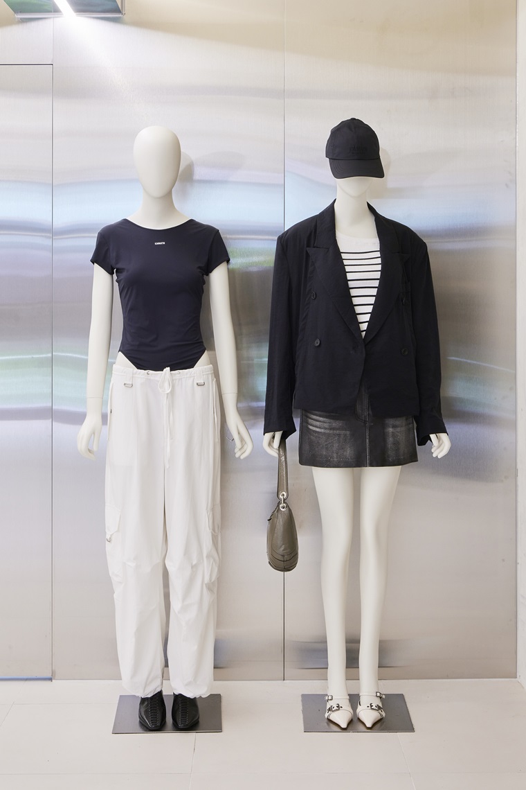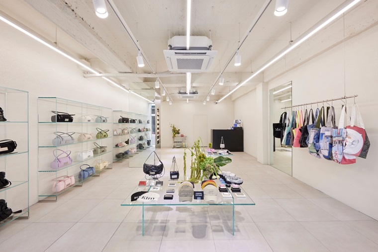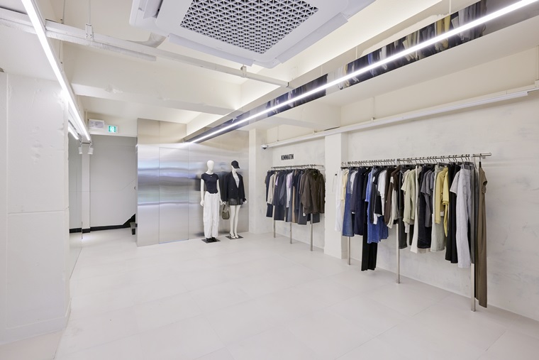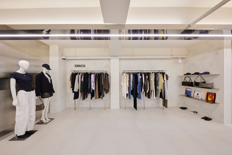 또한 층마다 벽의 재질을 다르게 적용해 러프한 요소를 강조해 마뗑킴만의 차별화된 무드를 연출했다. 1층에는 베스트셀러인 아코디언 월렛과 볼캡을 비롯한 액세서리류를 배치했으며, 2층에서는 마뗑킴의 시그니처 아이템과 신제품을 포함한 의류 컬렉션을 볼 수 있다. 3층은 마뗑킴의 하이엔드 라인인 ‘킴마틴’과 남성 라인을 구성했다.
