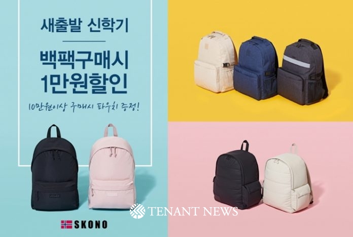 스코노는 신학기 백팩 출시를 기념하여 오는 1월 18일부터 2월 28일까지 스코노 전국 매장에서 백팩 할인 및 증정 프로모션을 진행한다. 스코노 백팩 제품 구매 시 1만원 즉시 할인 혜택을 제공하며, 10만원이상 구매 시 실용적인 파우치를 사은품으로 증정한다.