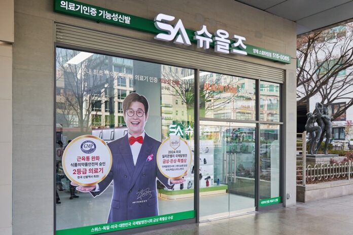 프리미엄 기능성 신발 브랜드 ‘슈올즈’가 서울 강남대로에 ‘양재 스포타임점’ 매장을 오픈했다. 매장 쇼윈도에는 브랜드 전속모델 ‘김성주’의 이미지가 크게 배치돼 지나가는 사람들의 이목을 끌고 있고, 매장 내부는 전체적으로 모던하고 깔끔한 분위기이다.