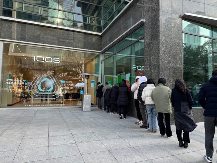 한국필립모리스는 7일부터 전국 9개 아이코스 직영 매장 및 아이코스 공식 온라인 스토어를 통해 신제품 아이코스 일루마 i 시리즈의 사전 구매를 시작했다. 사전 구매 첫날인 7일 아침부터 아이코스 일루마 i 시리즈를 구매하기 위한 고객들의 방문 행렬이 이어지고 있다고 한국필립모리스는 밝혔다.