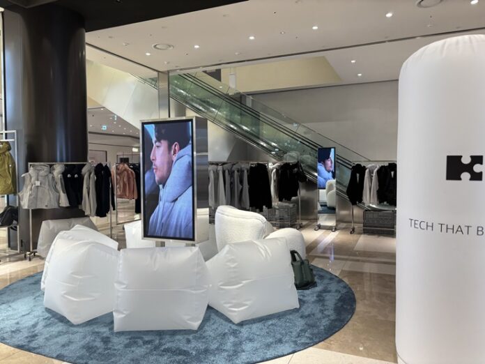 팝업스토어 부스는 새로운 컨셉에 맞게 공기(Air)를 활용한 다양한 조형물을 설치하고 시그니처 아이템인 목베개와 후드를 결합한 keek의 필로우디(Pillowdy) 제품을 소파에 앉아 직접 착용해보고 체험할 수 있는 포토존을 구성했다.