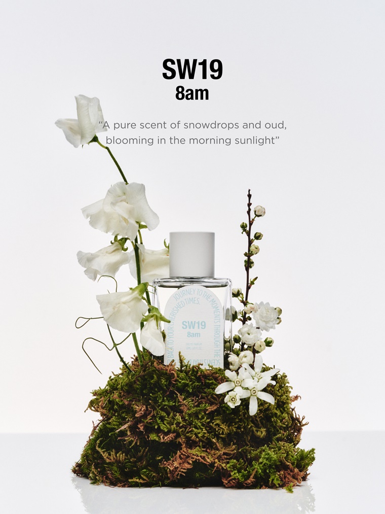 또한, 블루보틀과 미쉐린3스타 파인다이닝 레스토랑 밍글스의 공간 디자인을 진행했던 에리어플러스(AREA+)와 함께 협업했으며, 한국을 대표하는 금속 공예가 이상민 작가의 조명을 적용해 공간의 완성도를 높였다.이번 성수 스토어 오픈과 함께 새롭게 출시하는 향 ‘8am’은 SW19에서 처음 선보이는 플로럴 향이다. 오드 플로럴(OUD FLORAL) 계열로 아침 햇살에 맑게 퍼지는 스노우드롭과 오우드 향을 표현했고, 8am 향을 함께 협업한 조향사 마리안 나브로츠키 사바티에(Marianne Nawrocki Sabatier)는 “아침 8시는 싱그러운 초록 잎의 숨결이 감각을 깨우고, 순백의 꽃잎 향이 부드럽게 코 끝을 스치는 모습이 떠올랐어요. 그리고 맑고 깨끗한 아침의 풍경, 은은하게 퍼지는 비누 향도 떠오릅니다. 부드럽고 섬세하게 아침의 리추얼을 표현한 향입니다”라고 소개했다.