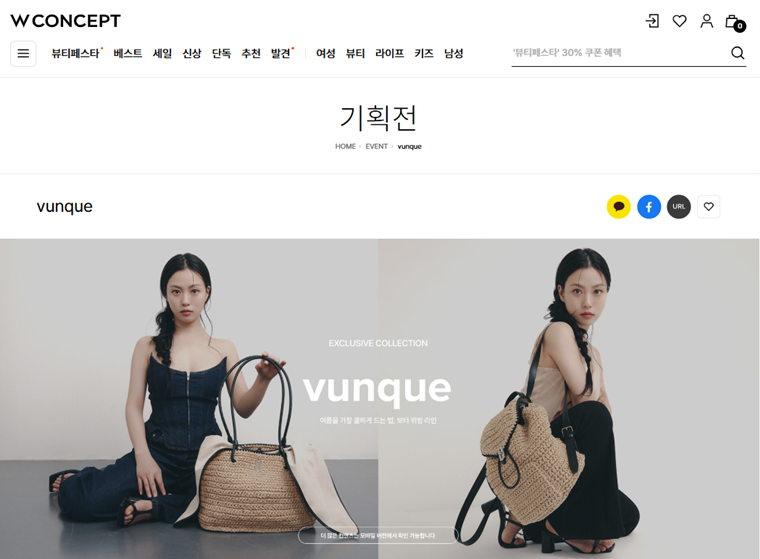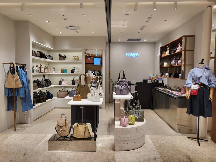 현재 유통망 : 자사몰(vunque.com), 온라인 플랫폼 (무신사, W컨셉, 29cm 등), 백화점 매장 (롯데, 신세계, 현대 외)