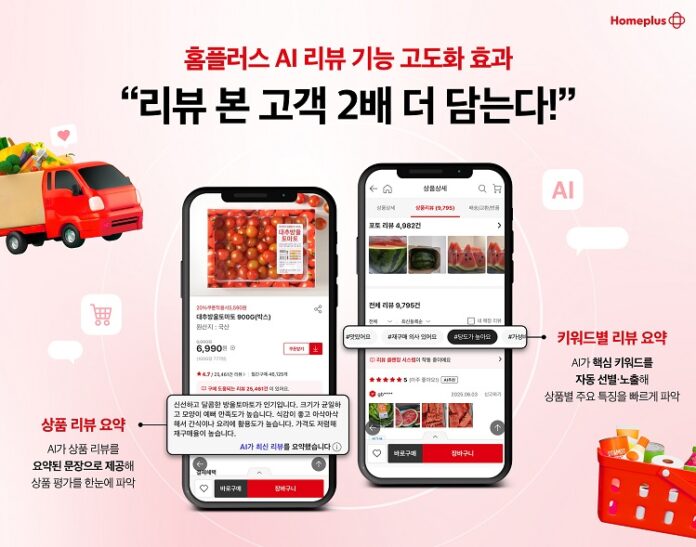 홈플러스 온라인(대표 조주연)이 고객의 온라인 쇼핑 경험을 향상시키기 위해 AI 기술을 활용한 리뷰 시스템 고도화한다. 기술적 혁신과 체계적인 리뷰 관리 전략을 함께 적용함으로써, 리뷰 기반 장바구니 전환율이 전체 평균 대비 약 2배 수준을 기록하는 등 고객의 구매 결정에 실질적인 도움을 주는 양질의 리뷰 생태계를 구축한 것이다.