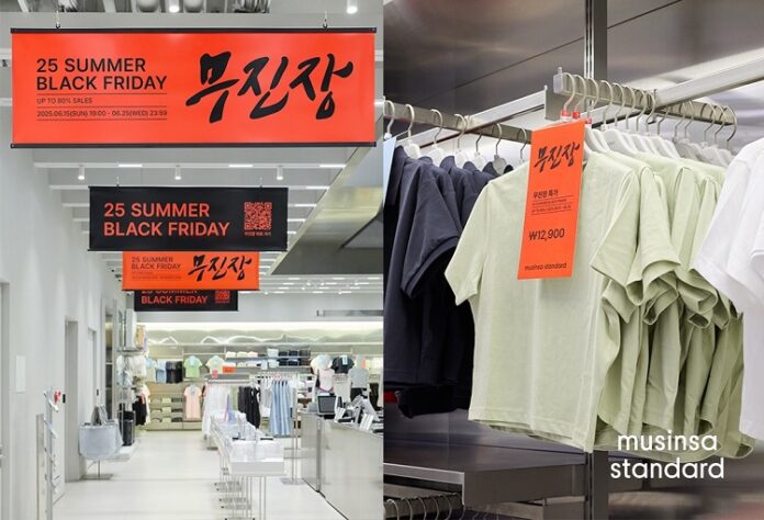 무신사(대표 조만호, 박문모)의 모던 베이식 캐주얼웨어 브랜드 ‘무신사 스탠다드(MUSINSA STANDARD)’가 상반기 최대 할인 행사 ‘무진장 2025 여름 블랙프라이데이’(이하 ‘무진장 여름 블프’) 흥행으로 오프라인 매장이 성황을 이루고 있다.