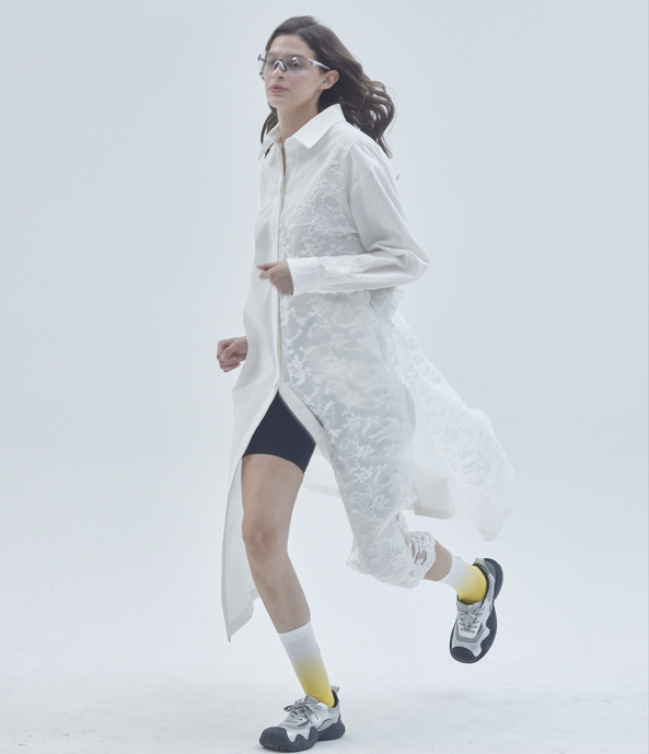 이청청 디자이너의 라이(LIE)는 러닝에서 영감을 받은 ‘RUN for Rhythm; In your own Lane’ 컬렉션을 통해 도전과 자유, 에너지를 담은 현대적 에슬레저 룩을 선보인다.