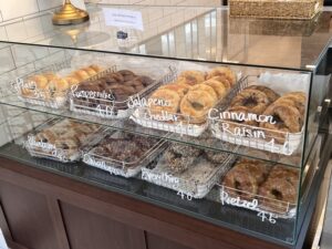 모닝사이드 카페는 당일 아침에 생산한 각종 베이글이 카운터에 진열돼 있다