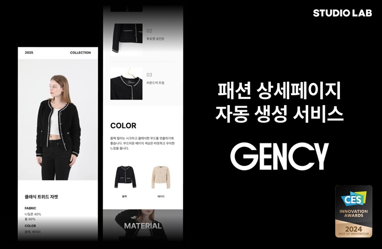 스튜디오랩은 자사 솔루션인 GENCY 와 GENCY PB를 통해, AI 상세페이지 자동 생성과 로보틱스를 활용한 몰입형 브랜드 경험을 제공하는 서비스를 제공하고 있다.