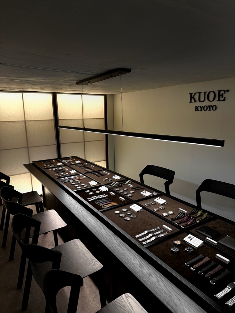 쿠오 교토의 첫 플래그십 스토어 ‘도산 하우스’는 강남 도산공원 앞에 위치해있다. 플래그십 ‘도산 하우스’는 교토 본점 이후 두 번째 플래그십이자 한국에서는 첫 독립 매장이다. 내부는 낮은 채도의 조명, 아늑한 공방 분위기의 교토 본점 인테리어와 감성을 그대로 옮겨왔다. 방문객은 전문가와 상담을 통해 다양한 스트랩과 다이얼을 조합하는 커스텀 서비스를 경험할 수 있다.