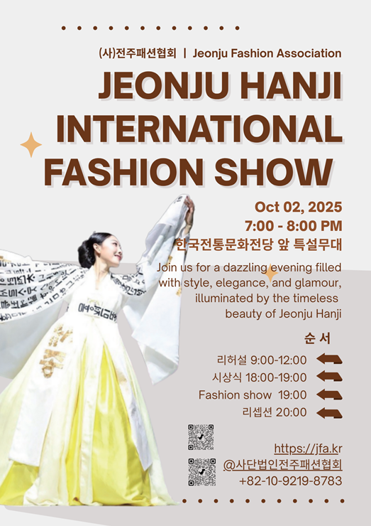 10월 2일(내일) ‘2025 전주한지대전’이 열린다. 이번 열리는 전주한지 국제 패션쇼는 ‘결(結): 한지로 잇다 (Connecting Threads: Hanji Bonds)’를 주제로 고전적인 패션 트렌드와 창의적인 작품들을 선보이는 자리가 될 것으로 기대를 모으고 있다.