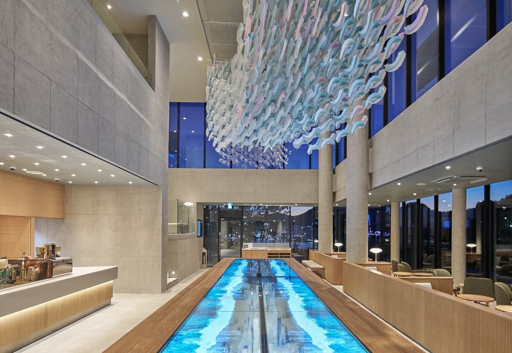 여느 매장과 달리 해당 매장에서는 해가 저물면 음악과 어우러진 커피를 표현한 미디어 아트 프로그램을 감상할 수 있는데, 스타벅스는 지난 2일부터 NHN벅스가 운영하는 음악 큐레이션 브랜드 essential;(에센셜)과 손잡고 새로운 콘텐츠를 선보이고 있다.