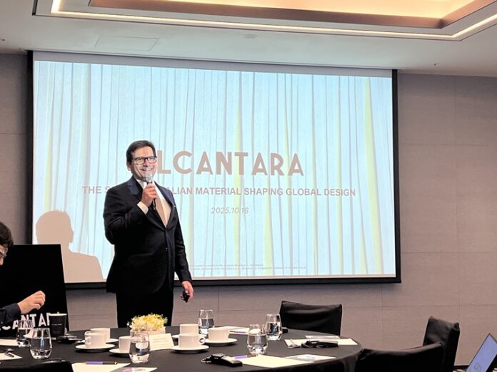 이탈리아 프리미엄 소재 브랜드 ‘알칸타라(Alcantara)’가 10월 16일 서울 소피텔 앰배서더 호텔 6층 콩고드룸에서 기자간담회를 열었다. 이번 행사에는 알칸타라의 회장 겸 CEO 유지니오 롤리(Eugenio Lolli)가 직접 한국을 방문해 의미를 더했다. 국내 첫 방문인 유지니오 롤리 CEO는 알칸타라의 디자인 혁신과 비전, 지속가능한 브랜드 철학을 직접 소개해 눈길을 끌었다.