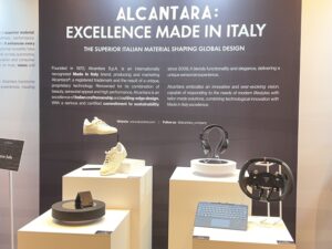 ‘글로벌 디자인을 완성하는 이탈리아 소재의 정수’를 주제로 열린 이번 기자간담회에서는 알칸타라의 소재 기술력, 글로벌 전략, 지속가능성에 대해 심층적인 소개가 이뤄졌고, 행사장 뒷편에는 알칸타라 소재를 활용한 제품이 전시돼 있어 브랜드 고유의 감성과 소재의 촉감을 느낄 수 있는 자리가 마련됐다.