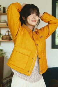 화보 속 김혜윤이 착용한 제품은 ‘컬러라마 경량 구스 다운 자켓’이다. 프리미엄 구스 다운 충전재를 사용해 보온성과 코닥 특유의 빈티지한 색감을 살려 디자인 완성도를 높였다. 그레이, 옐로우, 블루, 블랙 등 코닥만의 컬러감을 녹인 경량 다운으로 구성되었고, 일체형 후드와 전면 지퍼 포켓, 코닥 로고 아트워크로 실용성과 섬세함을 더했다. 가볍기 때문에 장시간 착용해도 편안하고, 입체적인 실루엣이 체형을 보완해 데일리 패딩으로 제격이다.‘씨네프레임 경량 퀼팅 자켓’은 간절기 아우터를 코닥만의 필름 감성으로 풀어낸 제품이다. 코듀로이 카라와 전면의 퀼팅 패턴, 톤온톤 컬러 배색이 자연스러운 조화를 이루며, 가볍고 따뜻해 일상에서 매일 입기 좋다.