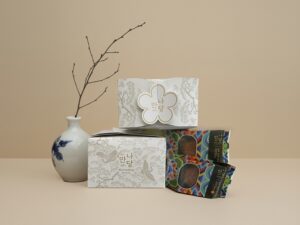 한국 전통 디저트 브랜드 ‘만나당’은 시그니처 상품인 궁중 약과와 유자 약과의 패키지에 대한제국 왕실의 상징인 오얏꽃 문양을 활용해 한국적이면서도 세련된 디자인을 담았다. 또한 면세점 외국인 고객 특성을 반영해 합리적인 가격대로 구성, 선물용 수요를 적극 반영했다.