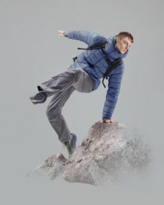 불필요한 레이어를 최소화해 무게를 줄이는 동시에 ROM(활동 반경)을 고려한 입체 패턴으로 활동성을 높였다. 또한 패커블 설계를 통해 휴대성을 강화했으며, 라이트카키와 블루 등 자연에서 영감받은 톤으로 세련된 아웃도어 무드를 완성했다.